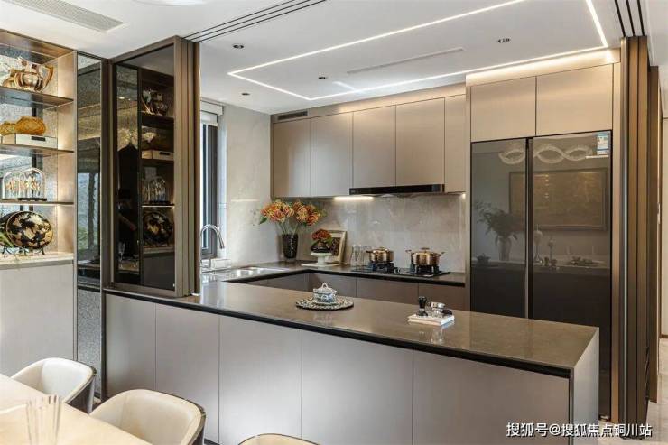 从客厅自然延展,博洛尼厨柜以独特的金属光泽和质感,及精细化的细节设计,将居室的气质渲染得更为浓烈,让空间具备无尽的探索价值。