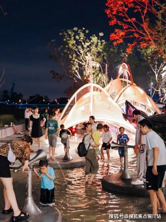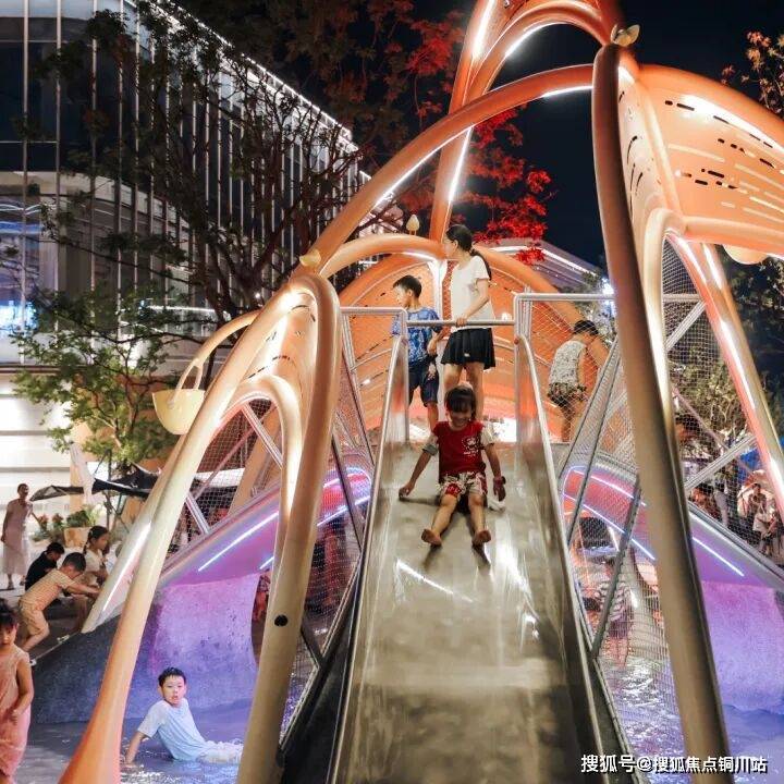 蓝调时分,联投花山河正上演动人一幕,下班族穿过地铁直达上岸公园的滨河商街,在大草坪的落日舞台边聆听乐队演奏;孩子们在灯光柔和的亲水空间追逐玩耍。