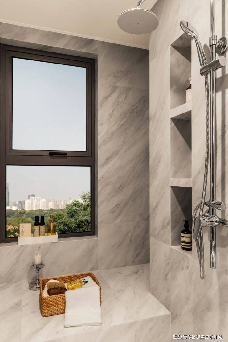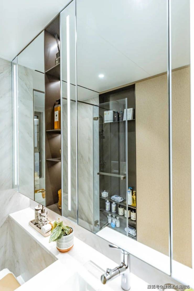 ②在主卧卫生间台盆边的结构墙体上挖出更多收纳,利用好每一寸空间。