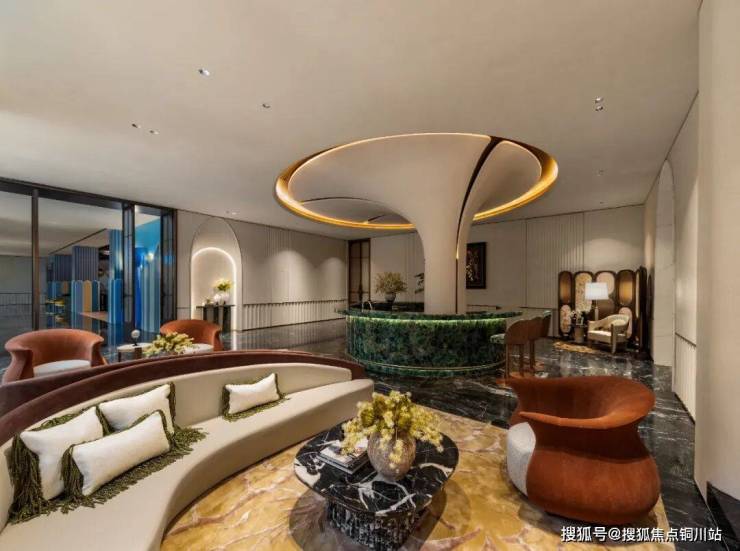 信步至下沉式休闲阅读区,石材的厚重、皮革的柔软与金属的光泽在此和谐对话,一场沉浸式的雅致人文体验,于此悄然展开。