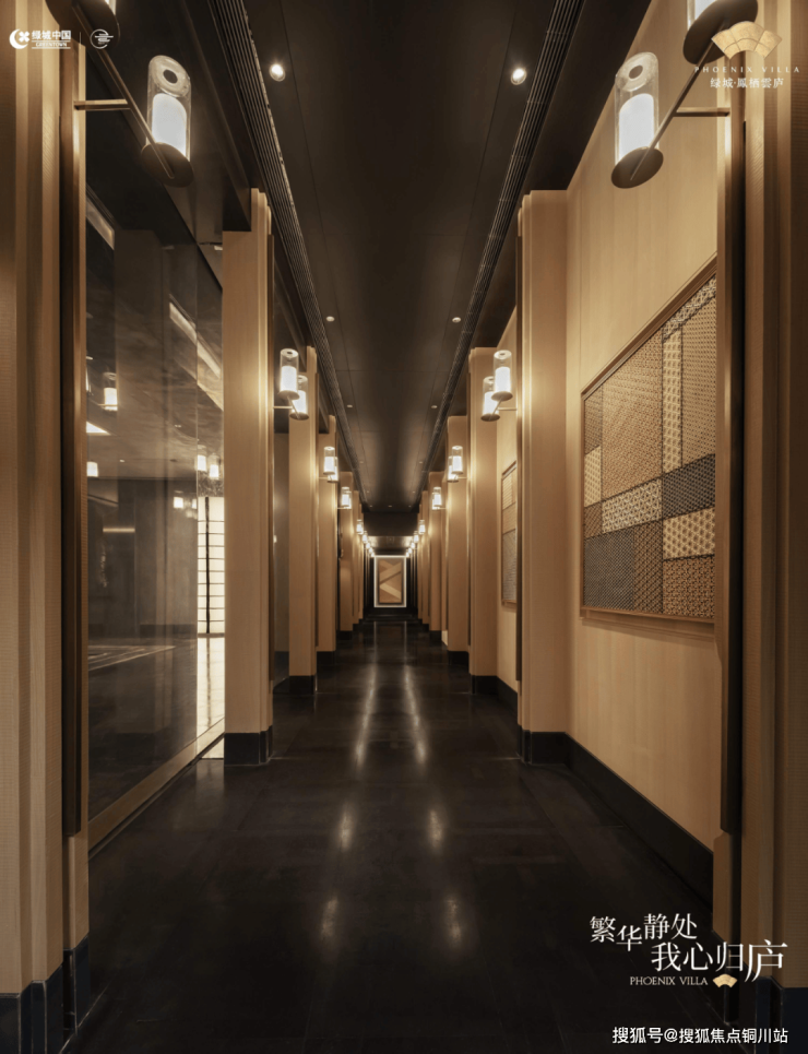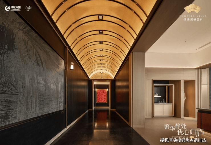 上图是凤栖云庐的入户界面,一眼看过去,与当前市场楼盘入户门头常见的豪奢风截然不同,凤栖云庐营造的是一种“隐匿于繁华中”的高奢酒店入户体验: