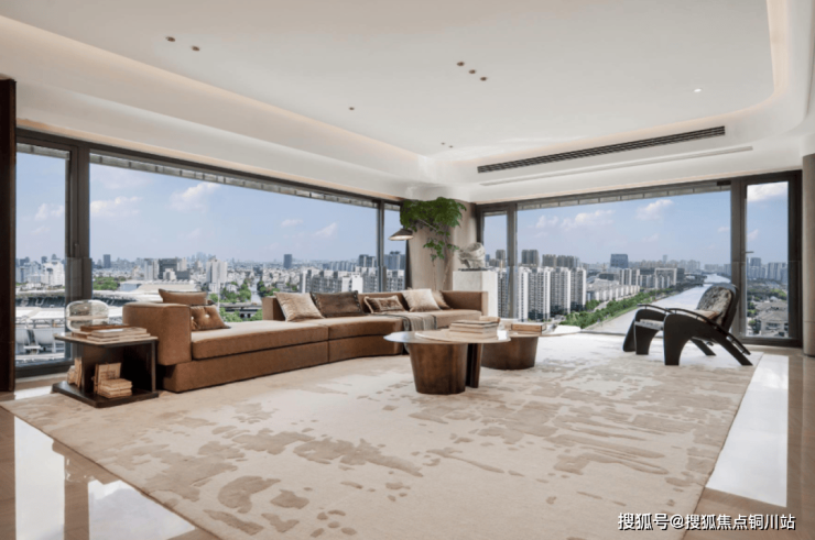通过尽可能拓宽视野的设计,实现自然与生活的深度交融:清晨的运河晨雾、正午的粼粼波光、傍晚的城市霞光,都成为日常起居的流动背景,这正是奢宅生活的要义。