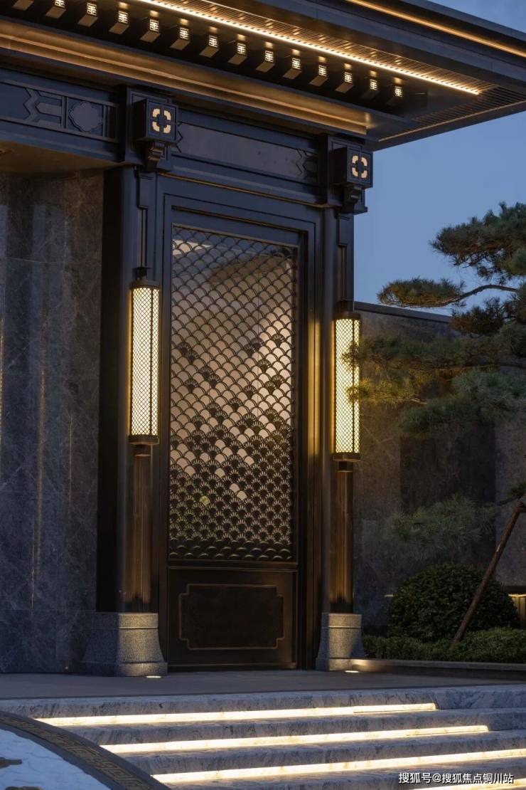 步入其中,映入眼帘的是一条绵延开展超长城市界面景观带,金碧辉煌的王府大门,八棵造型松,均按照古画姿态甄选而立。两侧流水潺潺,似有琴音萦绕,瞬间将外界的尘世喧嚣隔绝于外,让人仿佛穿越时空,沉浸于一方尊贵大气、古朴自然的府制前境之中。
