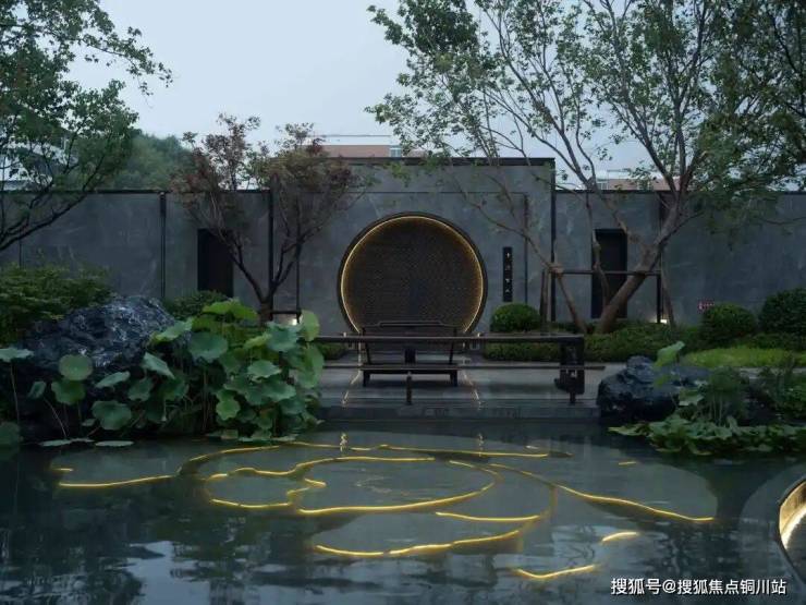 临台而观池,碧波荡漾,微风轻拂,方寸之间尽是中式华美。