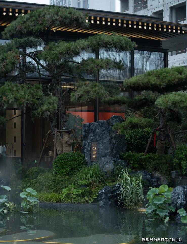 每一次作品的呈现都是团队的匠心凝结,手工锤打的如意祥云姿态饱满,丝丝入扣,彰显王府贵气的同时也体现了我们对于品质的至高追求。园内13棵造型松皆来自泰山脚下,是设计师远赴千里精心挑选,每一棵都与古画进行对照,确保姿态各异,古朴自然。园内应用五大奢石,彰显尊贵品质,经过无数次比选对照最终确定,使其在体现品质的同时与整个园区的气质完美契合。