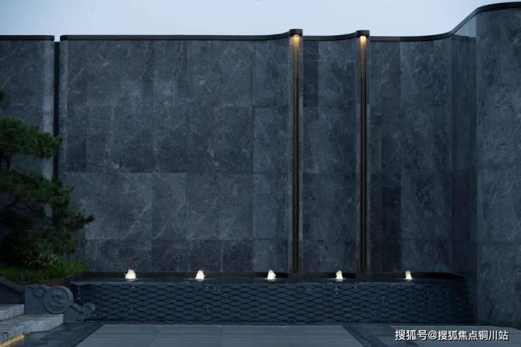 云朵拉灰大理石景墙如诗画展卷,书脊起伏,似是有人在细细翻阅、品鉴。