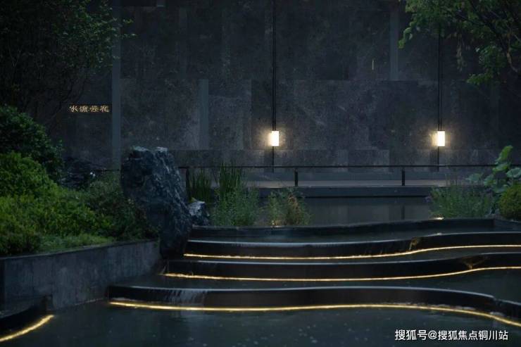 穿过门庭,踏上一段曲折回转的连廊“水流云在”,所谓欲扬先抑,以连廊作为大门与主景空间的情绪过渡,围合成一方天井与锦鲤池,似是桃花源中“山有小口,仿佛若有光”的另一种呈现,正是克制内敛的东方意境表达。但情绪虽“抑”,景观细节的呈现却丝毫未减。