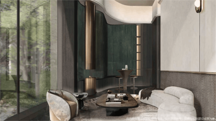 江宸会馆——约10米挑高的休闲区,化身通透的“江畔客厅”,闲坐即享开阔,涵盖会客厅、静谧书馆、咖啡馆等空间,集萃品味、艺术、私享为一体的圈层社交中心,以领潮于前的至臻品位,将优雅贯穿始终。