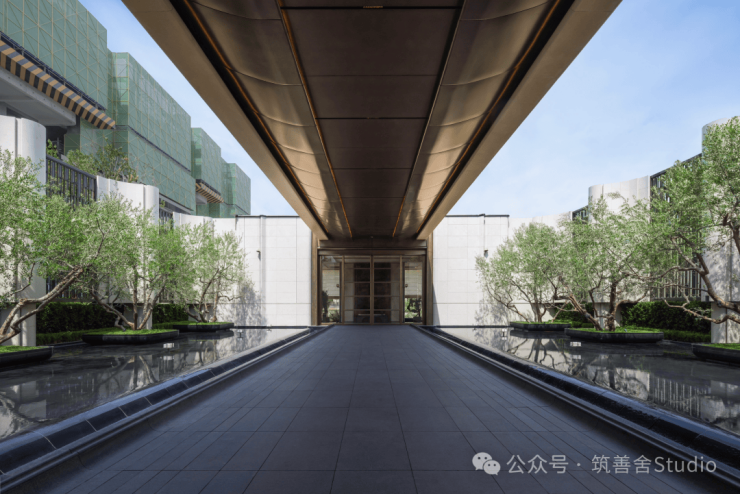 序院区,同频招商玺“树宅相守”理念,招商嵩雲序精心打造约24米水景长廊,营造出一步一景的归家仪式感,峰影婆娑,情境交融。在此空间,约6.6米高的景观墙与定制灯具交相辉映,郑州特色纯手工定制铝板吊顶,别具一格,构筑独特风景线。水景长廊两侧,油橄榄树列阵而立,每侧4棵,共计8棵,营造出庄严而温馨的回家序列仪式空间。