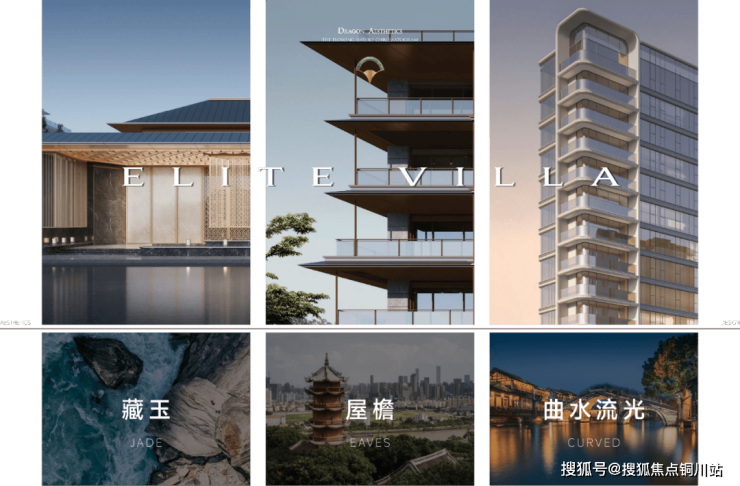 迎龙观月合院与叠墅建筑取意无锡龙光塔的飞檐神韵,以现代手法重构层层出挑的轮廓线,勾勒如翼舒展的东方意境。叠翠鎏金的立面,源自“运河如玉带,玉从石中来”的在地哲思——大运河不仅孕育生机繁荣,亦如温润美玉,承载人文祝福与自然馈赠。香槟金色铝板闪耀现代光泽,与白雪公主石材的柔润肌理、玻璃栏板的通透质感交织碰撞,在光影中书写一幅既有庄重气度又不失轻盈诗意的当代立面画卷。