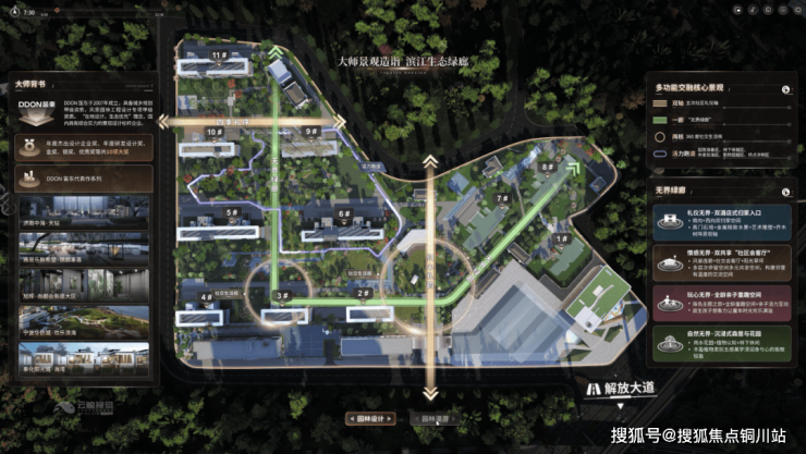 项目以“无界景观”为设计语言,规划一廊、双轴、两核、多点景观,营造全时段、全人群、全功能性的景观生活空间,让灵魂栖居在诗意的花园。