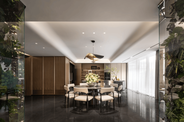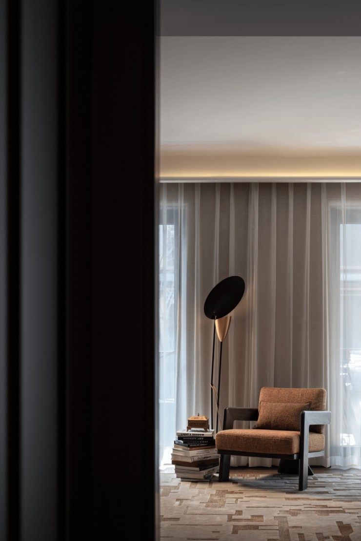 设计师以“隐”为道,借自然屏风滤去尘杂,留白处皆是自在逸然。