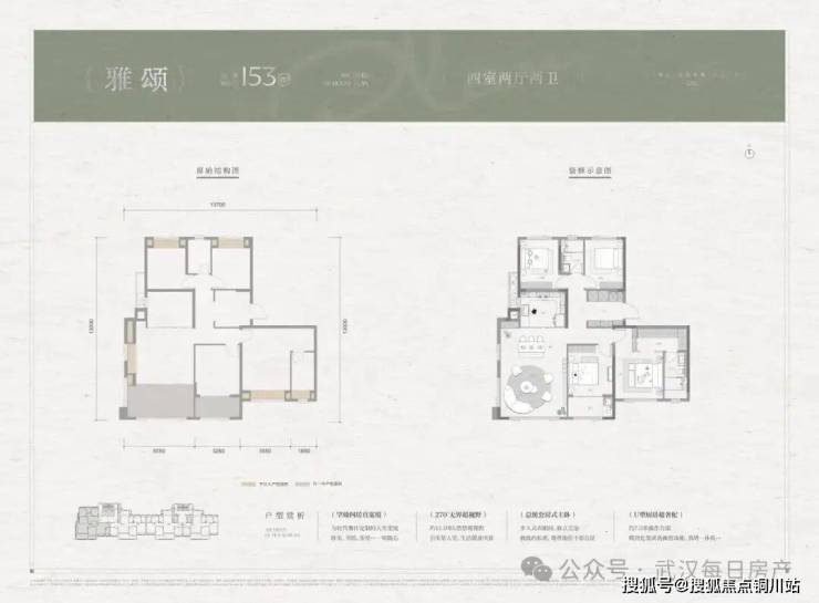 5、准第四代住宅产品,得房率非常高!项目是在汉十条出来之后报规,户型产品主要是阳台按照最新标准设计,开间进深非常大,每个户型都有大量的飘窗,虽然是超高层,但整体得房率非常高,能达到85%。