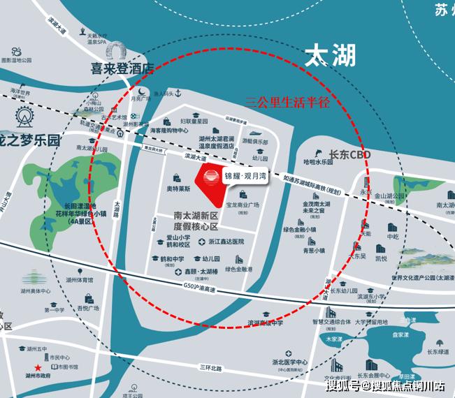 生态配套:周边有长田漾湿地公园、太湖湿地公园、月亮广场、七星级月亮酒店、渔人码头、游乐园 “龙之梦” 等,自然环境优美,休闲娱乐设施丰富。