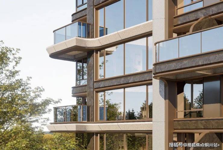 外立面用了石材(首层)+仿石铝板+大面落地窗,还有陶板和金属格栅,而且东西南北四面都用了三玻两腔系统窗,隔音效果卓然且历久弥新,而大面积导弧落地窗则巧妙地将自然光线充分引入室内,让空间时刻保持通透明亮,室内采光堪称绝了。