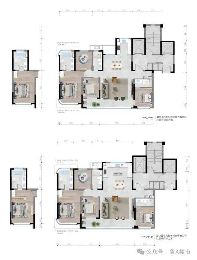 户型设计:户型有创新设计,如270°曲面屏视野、LDKG客餐厨阳台一体化等。建面约235㎡户型有南向约19.5米天幕四联屏,主卧开间约4.5米,空间奢阔,满足高端居住需求