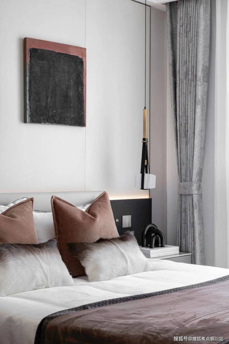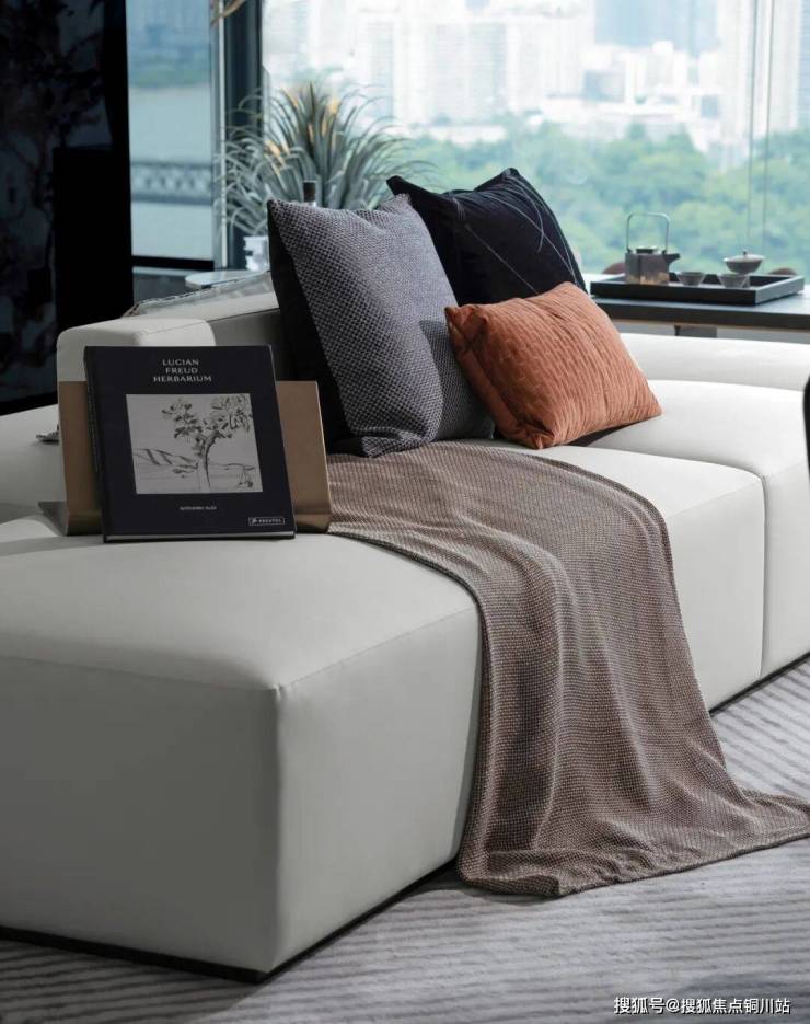 以自然之色,慢调悠然惬意的生活。渐变的棕色系抱枕,柔软的格纹地毯,给人以舒适放松的氛围感。在延续棕色的整体基调上,融合不同颜色的深浅、材质的碰撞,从而赋予空间丰富的层次感,在满足日常功能和舒适性的同时,增加了空间的高级感和品质感。