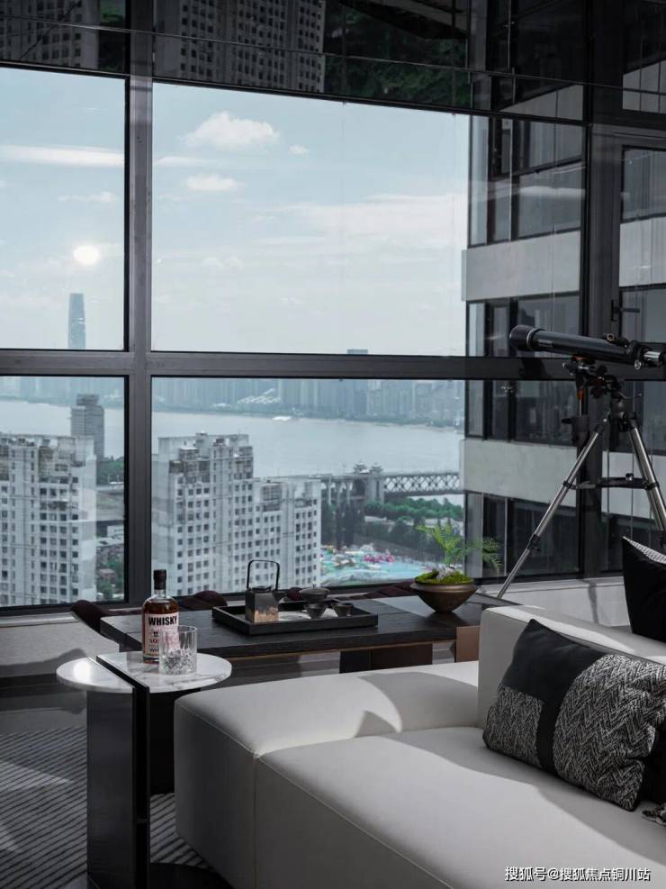 独具非凡格调的品茗区,B&O音响中流淌着悠扬的旋律,一首动人的钢琴曲升华了空间的氛围,与家人促膝而坐在窗景边,感受落日余晖的美好幻想,小酌过后,夜幕初临,窗外的长江灯光秀点亮了暮色,璀璨的光影映衬着悠悠江水,在这繁华栖居中感受生活的包容共生。