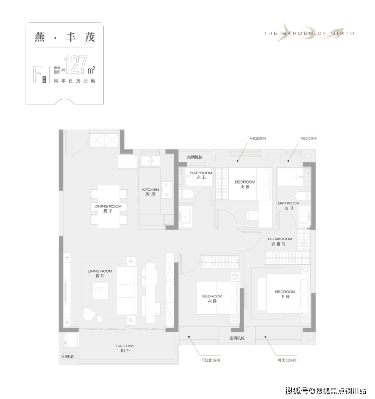 该户型的客厅拥有多变空间,即使后期做成3+1房,例如游戏室、穿搭室、书房都足够,可利用率高。而且,三个卧室均带有飘窗,可拓展面积多,尺度感也更大。