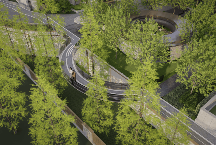 下沉庭院规划在社区主入口之后,作为归家动线上的一重过渡。