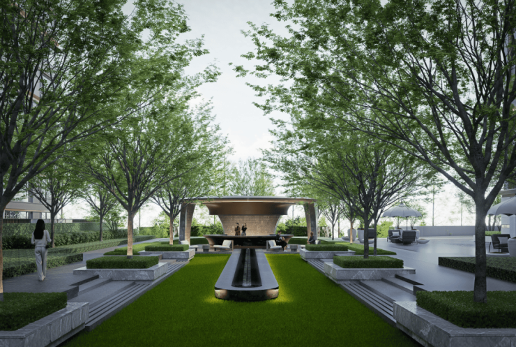 架空层之上,项目设计了一处内容丰盈的“空中花园”,在层次丰富的绿意之中,充分享受与自然的亲密接触。
