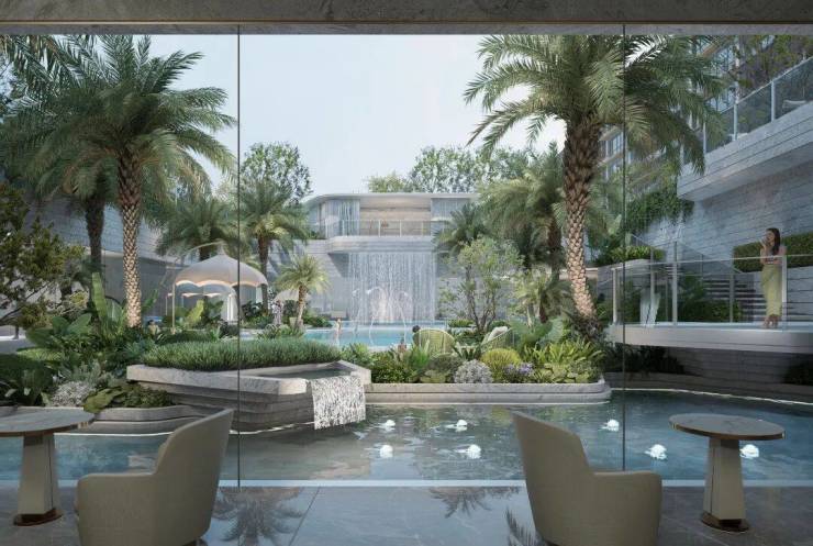 臻筑约800㎡下沉庭院,以斐济风貌为理念蓝本,构筑 “滨水游憩景观体系”,放眼整个无锡都难得一见。户外戏水池,湛蓝的池水与周边景观相映成趣,业主无需远行,便能享受在海岛畅游的惬意;会客区与Bar、相连,无论是与好友小聚畅谈,还是举办私人派对,都能在此找到专属空间;此外,会所还设有恒温泳池,劳累一天后,在泳池中放松身心,尽享悠然。