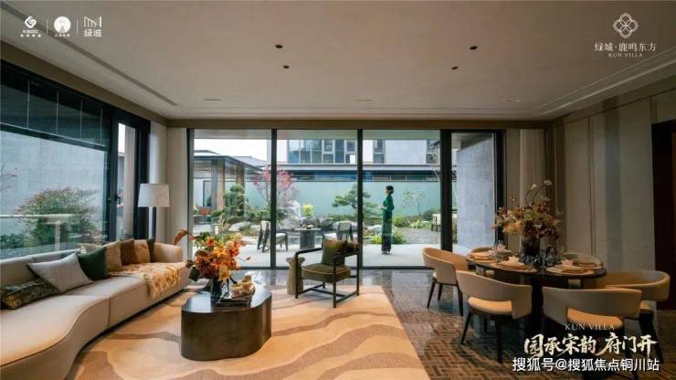 在细节上,绿城又开创性地首次重构了苏工技艺的精妙:比如结合宋式山水画屏与昆玉精雕的“白玉画屏”;比如以铝合金材料转译还原绞角造、榫卯及望柱等元素的“寻杖勾栏”;又比如绿城首次取形昆山市花琼花融合并蒂莲元素打造的“金镂格栅”,这些技艺不但代表着宋式美学“百事精微”的精神,更透露出绿城对产品细节的偏执。