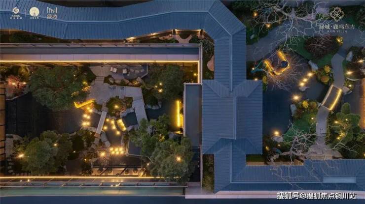 项目通过打造昆山首座下沉式宋风美学庭院,构建起双层洄游动线系统。绿城凭借6米高差的立体庭院布局,塑造出一幅可游可观的现代山水画卷。绿城设计团队取法昆山亭林公园,以自然高差为画布,用画笔把山、水、石、树等元素取用融合,结合池、泉、瀑、溪的立体多维水景系统,勾勒出城市里难得一见的自然式山水立体庭院。