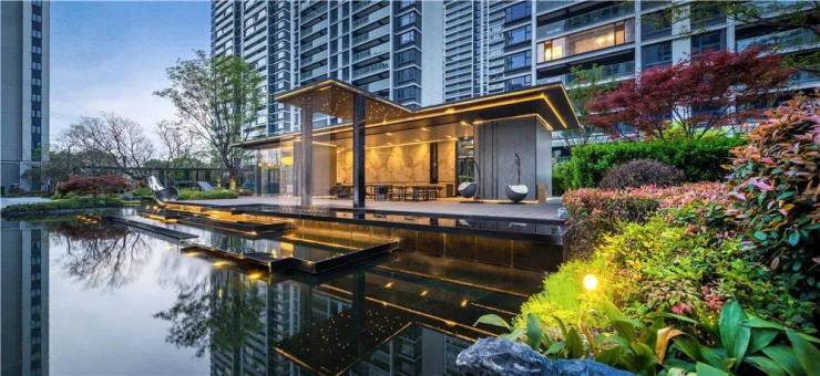 园林景观:萃取中国千载中轴对称礼仪,融入水韵景观,打造出一轴三进六境归家仪式感,彰显尊崇。