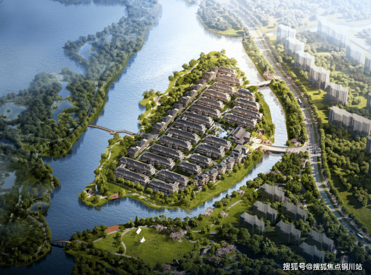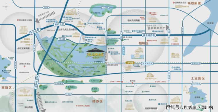 项目择址相城、姑苏、新区三区交汇处,紧邻约873公顷虎丘湿地公园,360°天然水系闭环成岛。