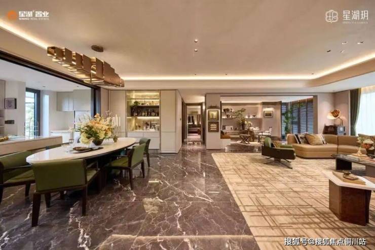 作为区域四代住宅标杆,星湖玥以空间形态创新重构高端居住体验,展现出强大的产品竞争力。项目打造约6.2米挑高错层空中庭院,搭配50%绿植覆盖率,将地面庭院搬至空中,破解了高层住宅缺乏私属庭院的行业痛点。在空间尺度上,项目突破常规标准,建面约148㎡户型实现7.8米南向开间,183㎡户型配备9米巨幕横厅与50㎡超大宽厅,3.1米层高超出住建部“好房子”3米标准,带来别墅级空间感受。