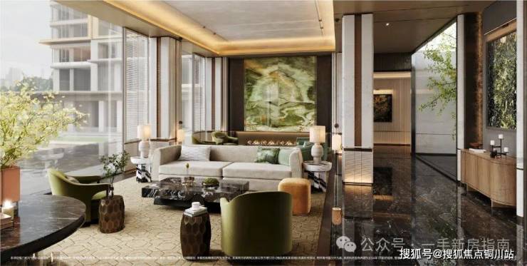 设计师以东方摩登韵味打造双重下沉庭院,以高规格规划约4000方会所,集月华阁、健身中心、私宴及共享餐厅、行政酒廊、瑜伽馆、壁球馆、室内全龄恒温泳池为一体,以及高层全架空主题空间,完善全龄乐动的生活体系。