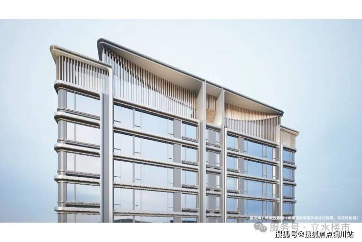 精研时代立面,恢弘天际美学,融合鹭岛海洋色彩灵感与波浪线条,雕琢流线式大面积天际幕墙,建筑顶部以“弦月”为灵感塑造,以数学几何曲线艺术镌刻湾“芯”天际。