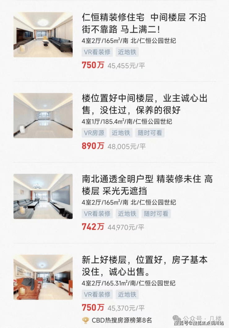 仁恒CBD公园世纪的二手房,引领整个片区房价首破4万;仁恒奥体公园世纪已交房一年半,二手房的挂牌价格也属于同片区最高,业主们的居住体验、认可度都非常高。