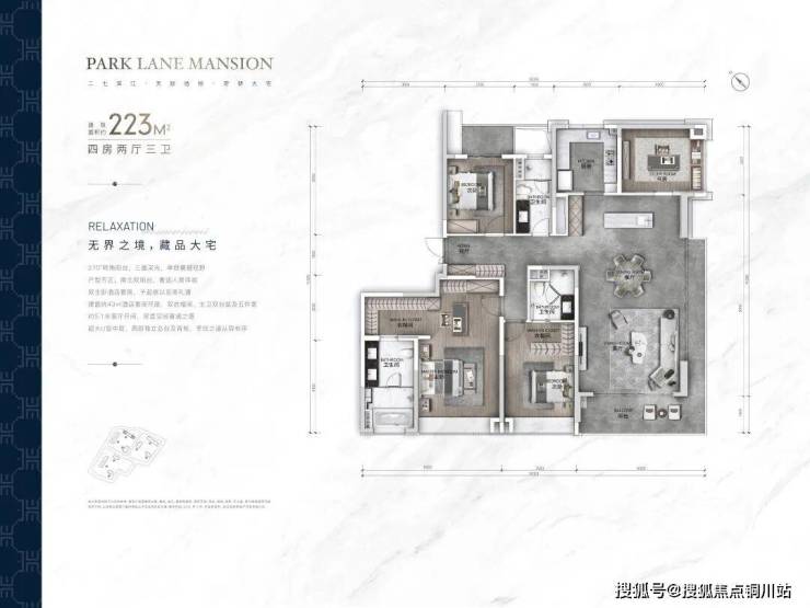 容积率约4.0的纯住宅,清一色的大户型,从数据指标上已经具备了豪宅的奢阔感。