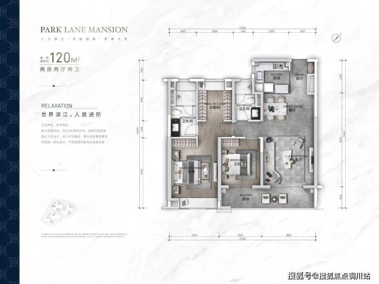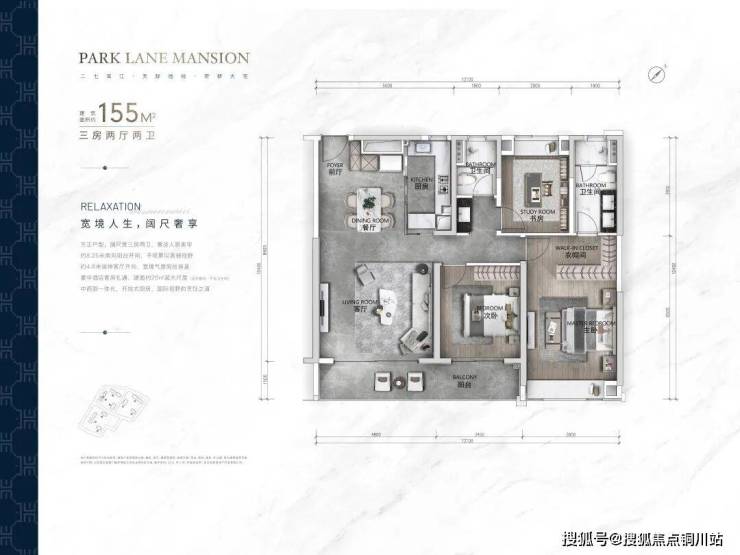 值得强调的是,项目设计了相对小一些的面积段,建面约120㎡两房,与建面约155㎡三房产品。