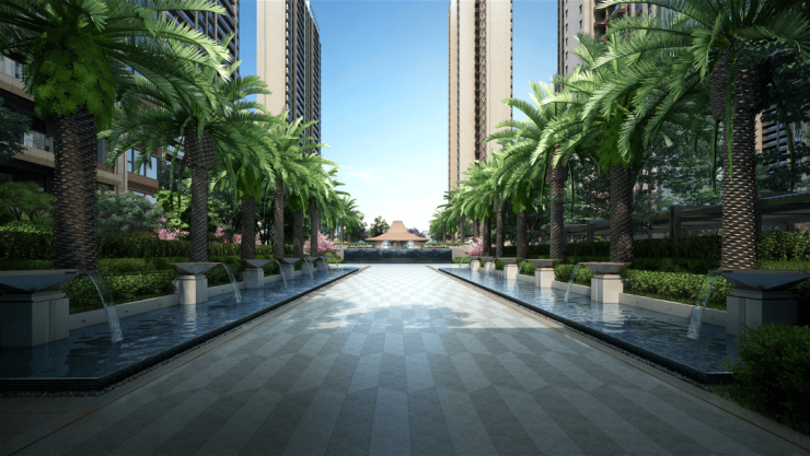 项目打造约 9000 平 “苏梅岛” 度假酒店风中轴景观园林,将度假酒店的闲适氛围融入社区景观之中。园林由专业团队精心雕琢,以中央景观区为核心,设置戏水池、森氧会客厅、阳光草坪及儿童活动区等丰富功能区域 。戏水池周边布置度假风情休憩座椅,仿佛漂浮岛屿,为业主提供惬意的休闲放松空间;阳光大草坪作为社区弹性活动场域,可满足露营、瑜伽、音乐会等多元场景需求,让业主尽情享受户外生活乐趣 。园林设计融入江南水乡文化元素,提取市花 “梅花” 及锡绣元素,将其巧妙运用在景墙格栅及入口铺装等细节之处,展现独特江南海派韵味,营造出兼具艺术性与领域感的社区景观 。
