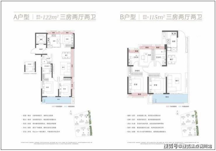 户型面积段在约99-172平米之间,主力户型是120平米左右的经典三房。