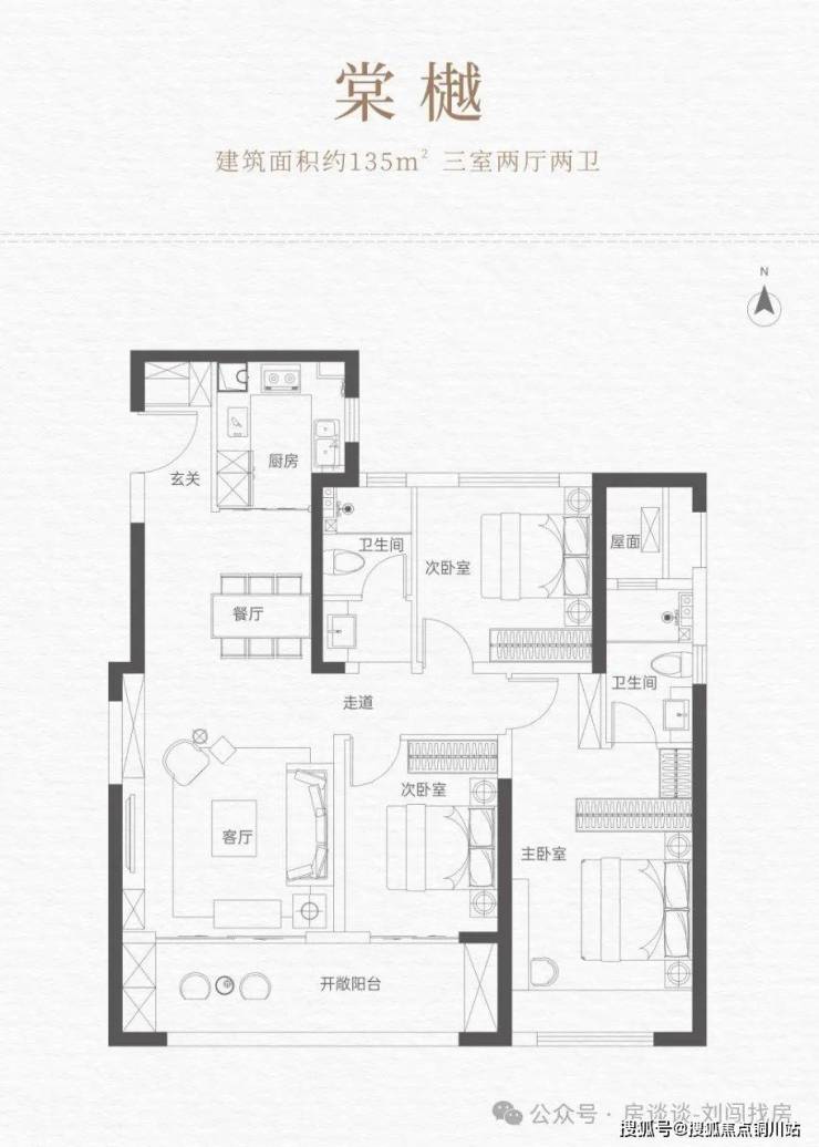 120㎡经典三房(三开间朝南、双卫设计)、