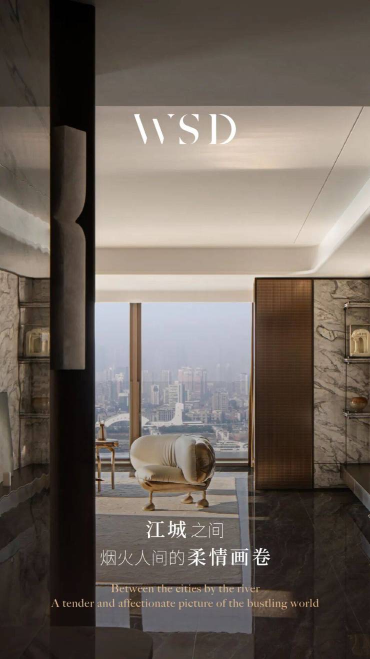 临江而居,倚水而立,生活便会趋向一种与都市保持着距离的隐逸状态。作为楚文化的发祥地,拥有悠久的历史文化,即使身处充满现代感的城市间依旧能从古老城墙的一砖一瓦中听到历史的回响。设计深入探索楚地文化和江城人文特色,以江为脉,以城为骨,以文化为魂,以人间烟火气为韵,绘制既有文化底蕴又富有国际都会色彩的生活图腾。