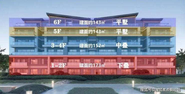 6层组合墅:中轴区采用经典双叠层+平层结构,外围区创新设置三重立体单元。