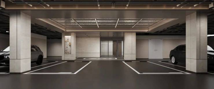 地下车库:精装水波纹吊顶,电梯直达归家