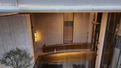 约13米高建筑飞瀑,潺潺流水与玻璃幕墙形成虚实交织的视觉焦点;叠水景观、空中连廊、休憩亭台层层递进,构建出“移步异景”的立体游园动线。近8.5米社区门头对标顶奢酒店尺度,通过石材与金属的碰撞,让归家成为一场非凡的度假旅行。