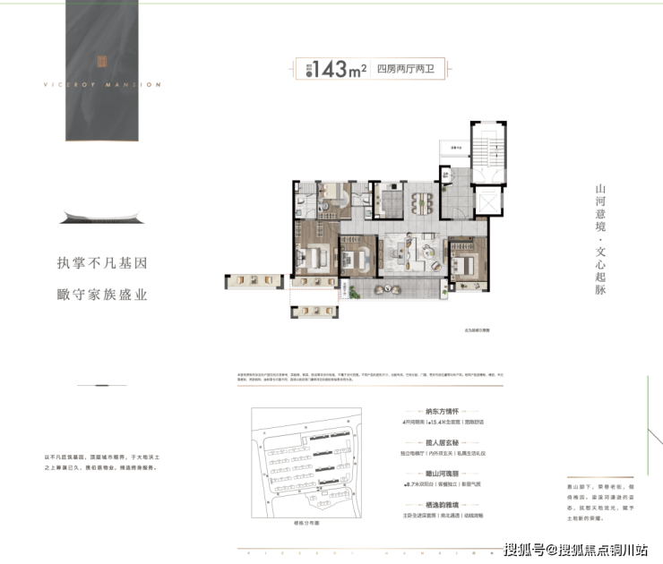 沿袭中式经典品味,将传统文化精粹与当代居住理念融合。以“五进归家韵味,呈礼三院生活”,再现门第尊荣