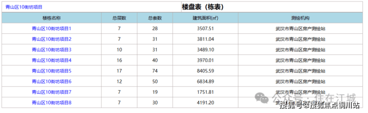 小区楼栋的层数、套数、建筑面积、测绘机构