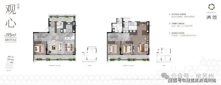 叠加约168/193㎡,均为4房3卫的舒适户型,房间全部朝南,客厅挑空,下叠带南北双花园,上叠送大露台(无需二次改造),哪怕中叠也带一个约10平的露台。