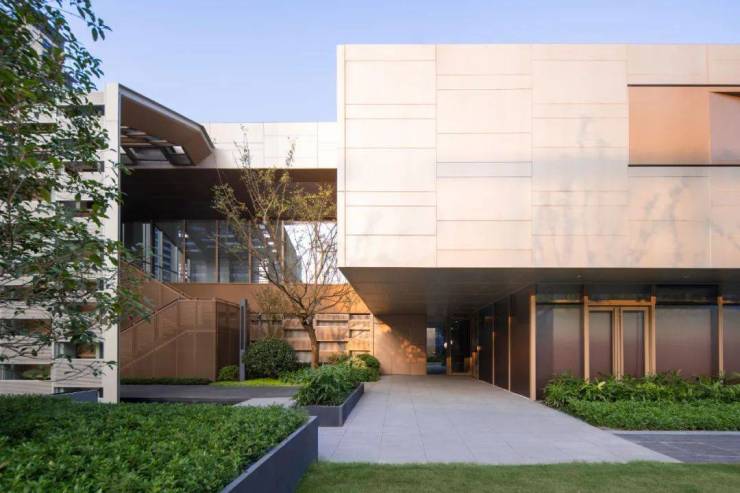 项目外立面,大部分使用铝板和玻璃,不仅带来视觉上的顶流享受,更是直接将板块新房外立面标准拔到了新level!