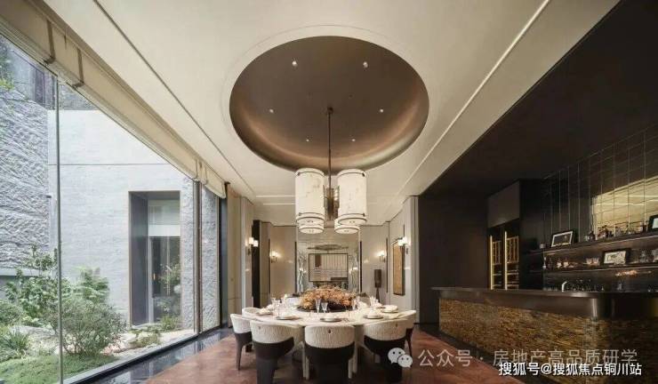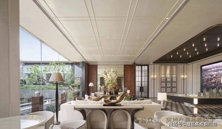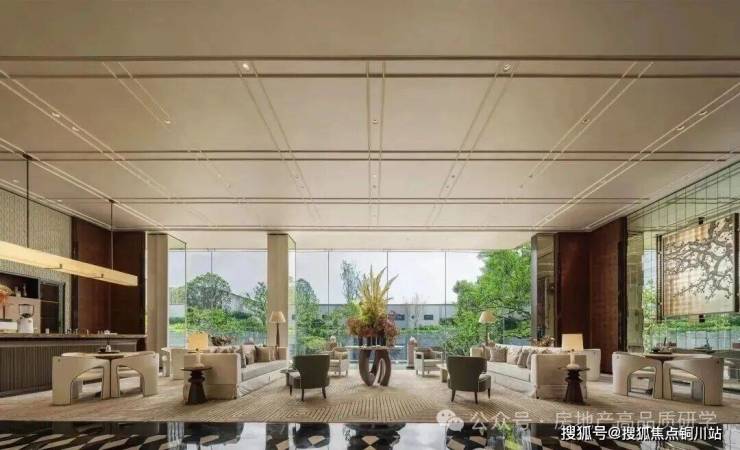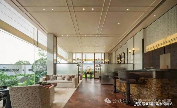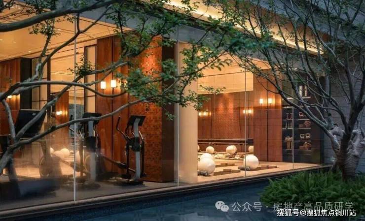 丽香庭的会所空间打破传统平面布局,创新性地将会所与泛会所融为一体,以垂直空间结构优化功能分区;同时遵循立体游园动线,确保空间布局的合理性。生活馆作为示范区核心建筑,巧妙内退于主庭院与次庭院之间,大面积玻璃幕墙的应用,使地面层的生活馆、茶室及地下一层的健身房、瑜伽室、恒温泳池、私宴厅、棋牌室等空间,均能直面庭院景观,实现全方位的景观渗透。每个独立大空间内采用开放式功能分区设计,在保持通透感的同时,兼顾私密性与舒适度。