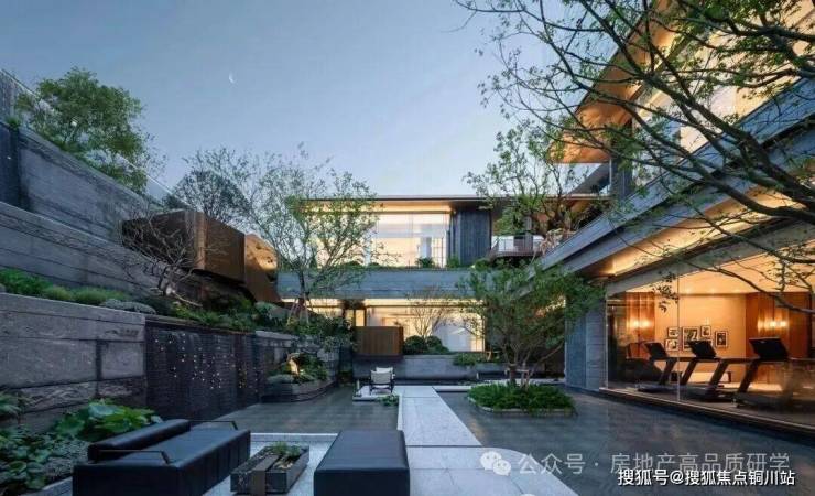 丽香庭以古典入园空间为灵感,精心营造多重院落与层层递进的归家仪式感。地块整体抬升约3.7米,结合最大高差超7.5米的下沉庭院,巧妙运用视觉层次划分功能区域。通过散点布局与小空间组织,消弭空间中心,自然山水垂直延展,构筑多维“立体庭院”。游廊蜿蜒、台地错落,漫步其间,沿自由灵动的立体游园路径前行,仿佛步入画卷,心随境化。