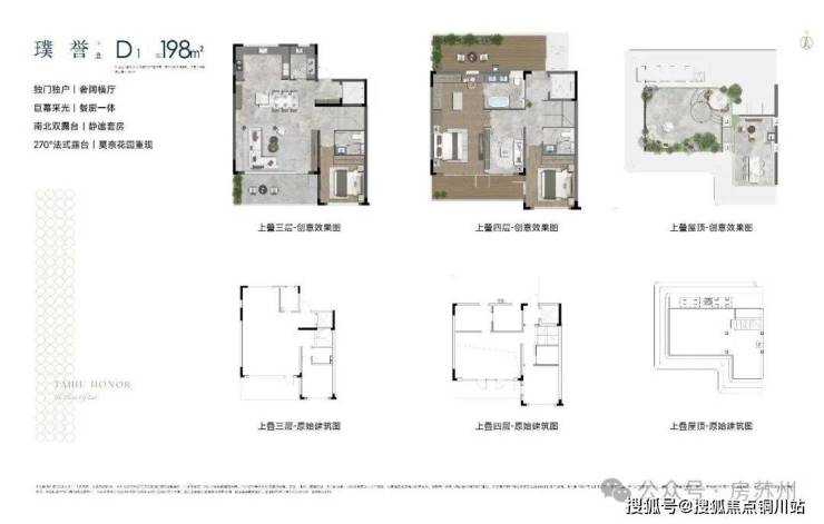 叠加——上叠 建面约198㎡、下叠 建面约213㎡;